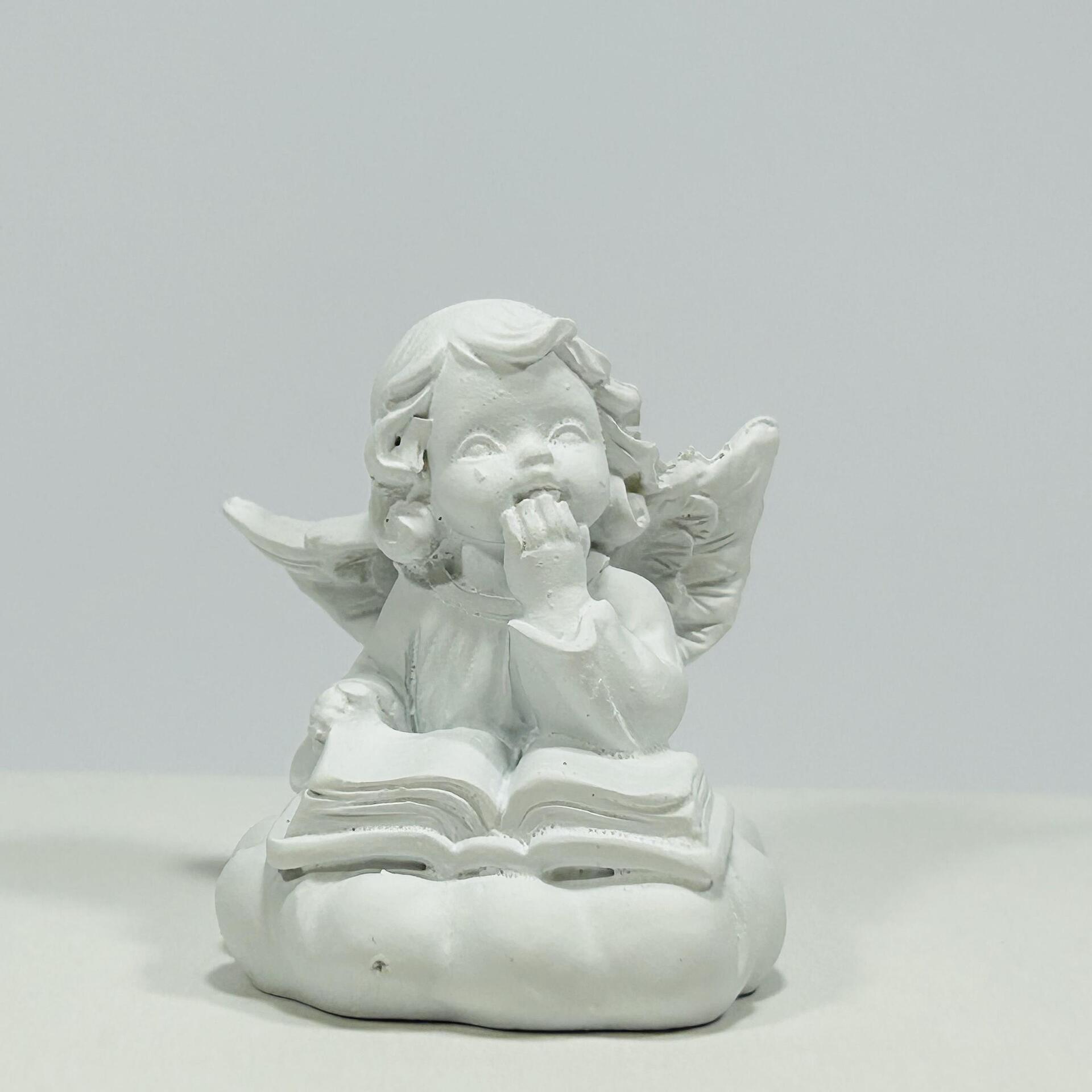 Ангелче за декорация с книга. Изработено е от полирезин. Размери 5,0 х 4,5 см.