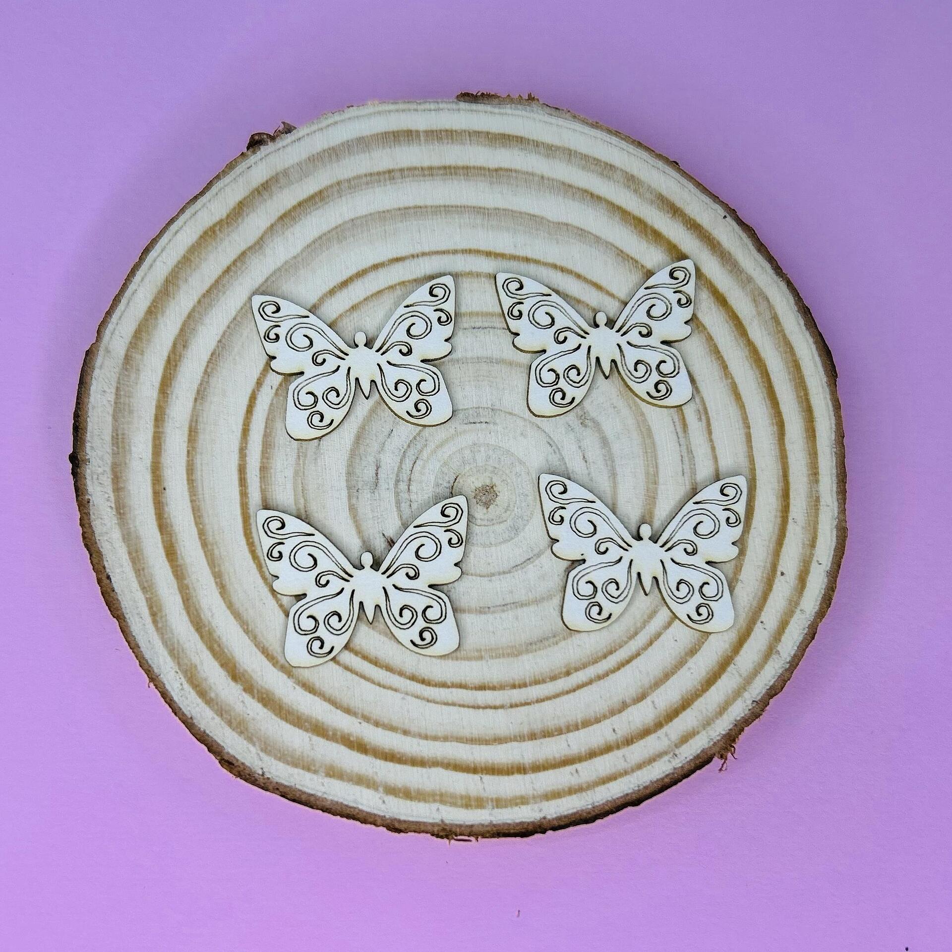 Пеперуди от бирен картон 2.5/2см - 4 броя в опаковка. Ефектна пролетна украса за картички, скрапбук и покани с деликатна ръчно изработена визия.