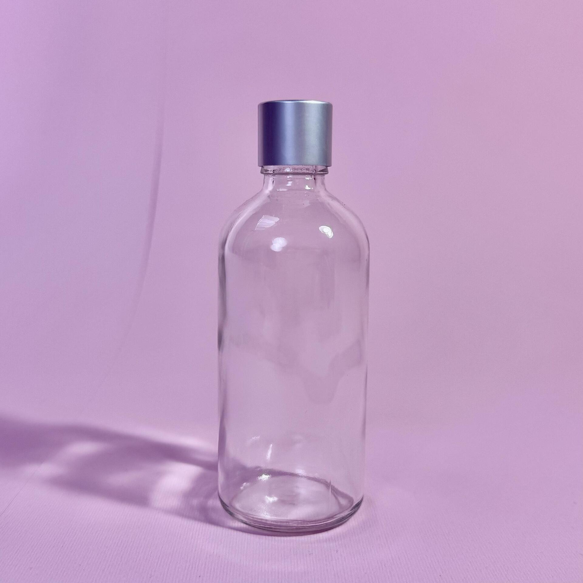 Стъклена прозрачна бутилка със сребърна капачка 100мл