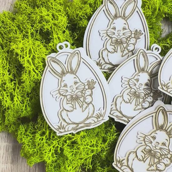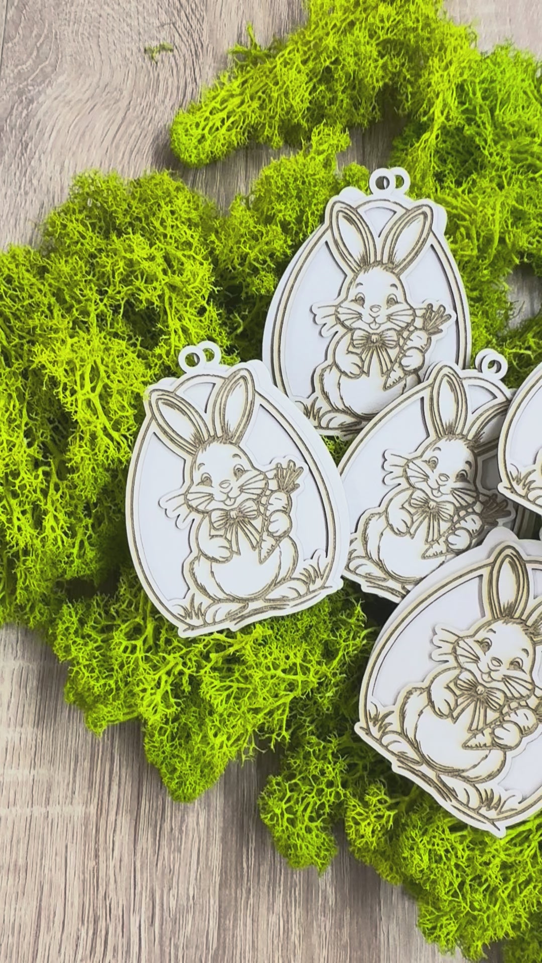Великденско яйце за декорация с гравирано зайче от бирен картон, 5броя в опаковка